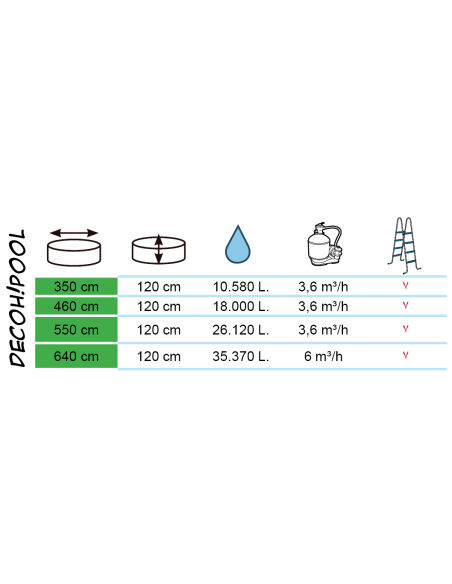 Compatibilité : piscines circulaires et ovales, hauteur 90 cm et 120 cm