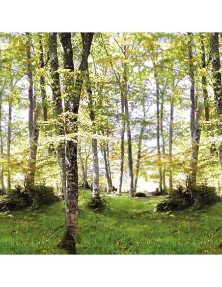 Bande décorative imprimée en quadrichromie HD sur polyéthylène haute densité (PEHD). Le visuel reproduit un motif d´arbres dans les tons marron et marron vert imitant une forêt, avec finition photographique haute résolution.