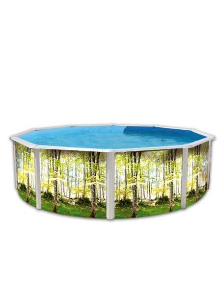 Piscine ronde de 120 cm de haut avec bande décorative FORÊT